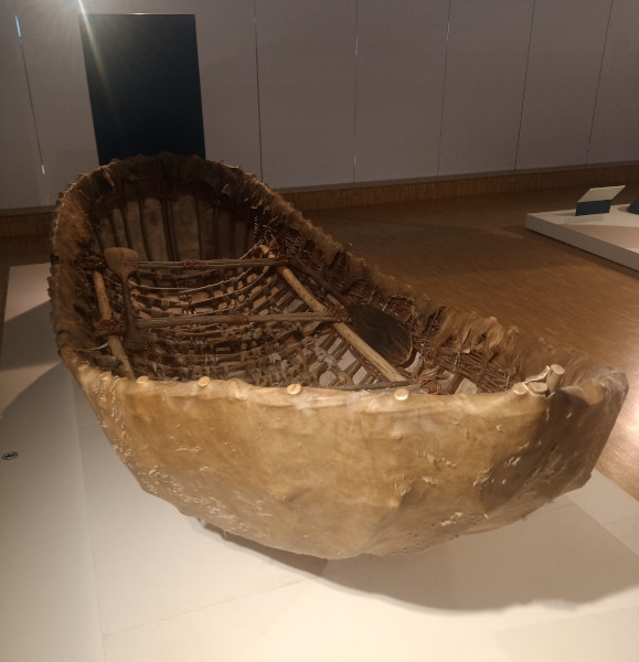 Rencontré dans la galerie d’exposition de la Villa Méditerranée (Marseille), ce « canoë experimental » est une reconstitution hypothétique des embarcations de nos ancêtres du Gravettien (faciès qui a occupé la Grotte Cosquer il y a 33000 ans).