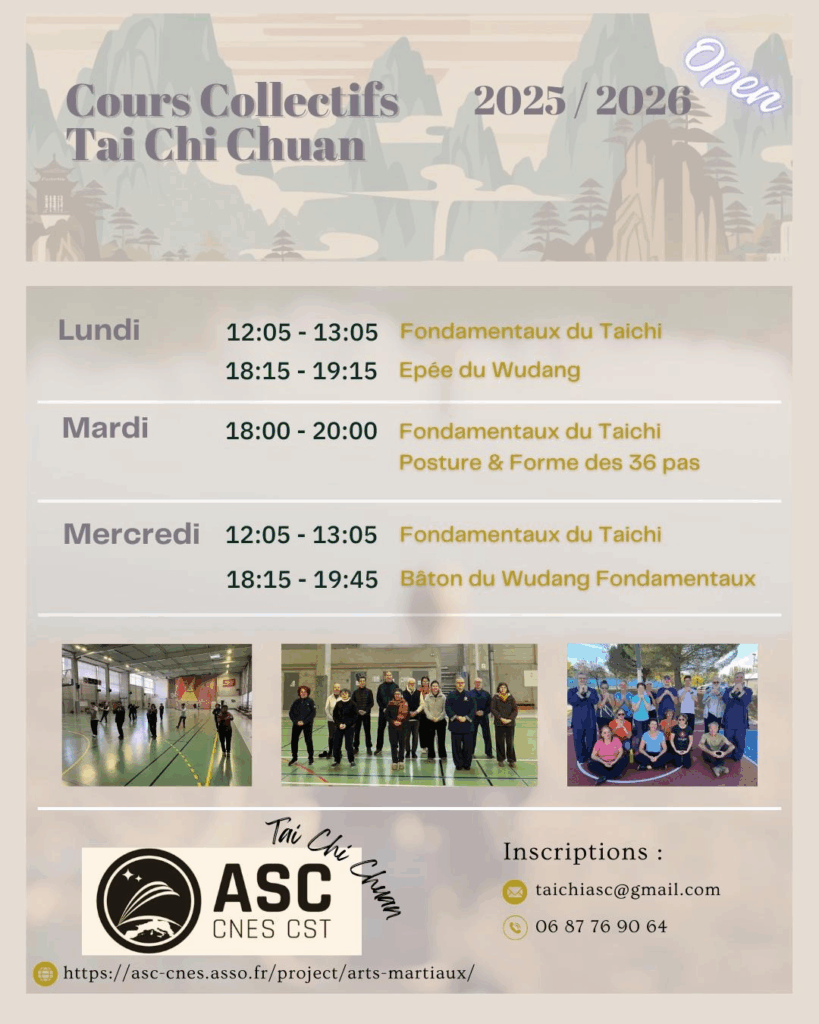 2 cours gratuits permettent de tester. Nous sommes généreux : vous pouvez venir à 2 cours gratuits que ce soit bâton ou Tai Chi Chuan ou Epée; soit potentiellement 6 cours gratuits.
