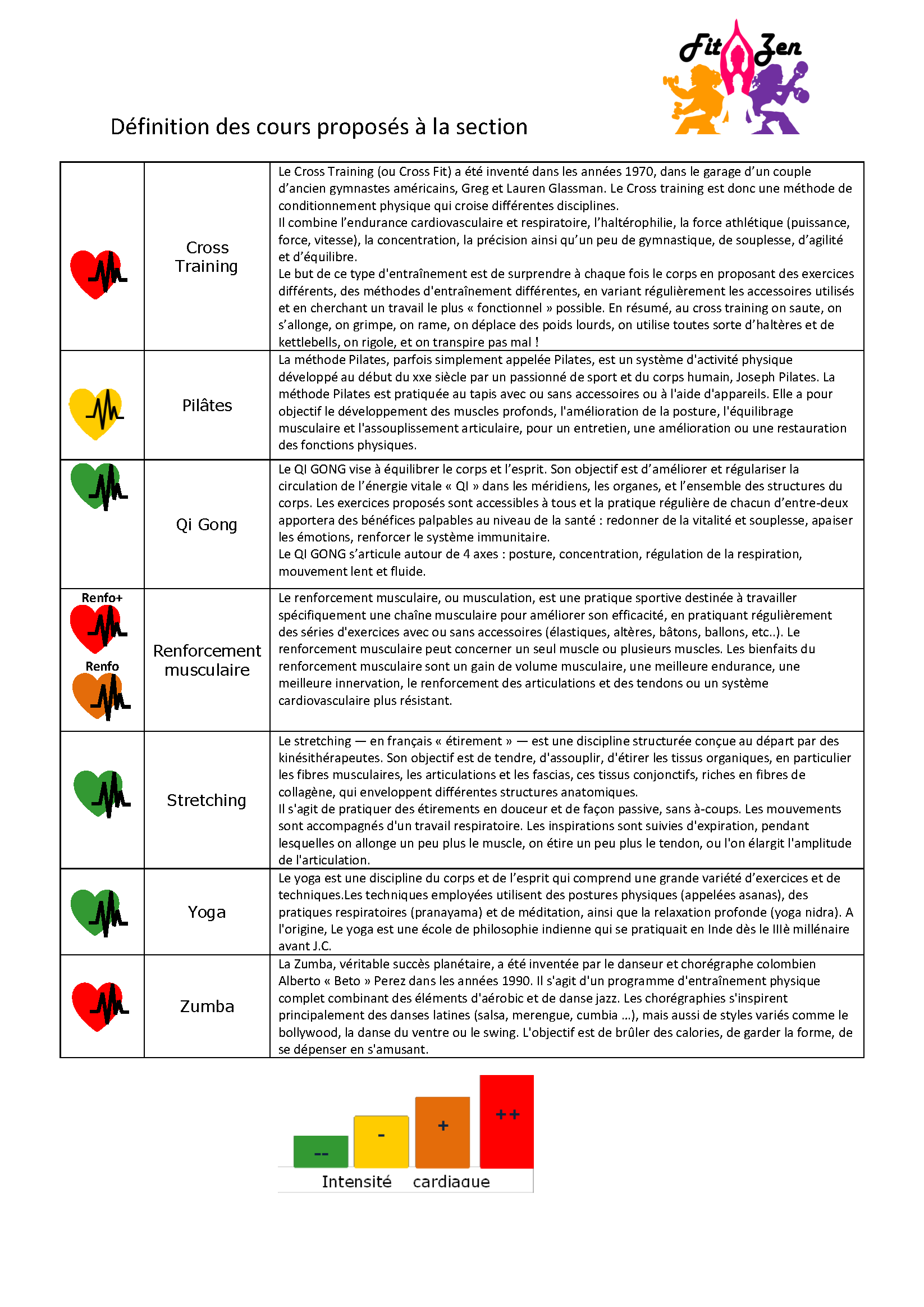 La section propose aussi parfois des stages de découverte (Qi Gong, yoga, pilates, renfo, stretch, piloxing, …).