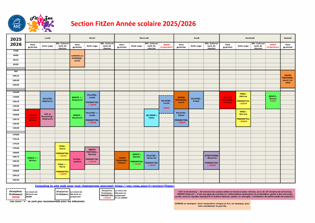 * Il est possible de s’inscrire en cours d’année. Contactez le bureau (FitZen.ASC@cnes.fr) pour en connaître les modalités.